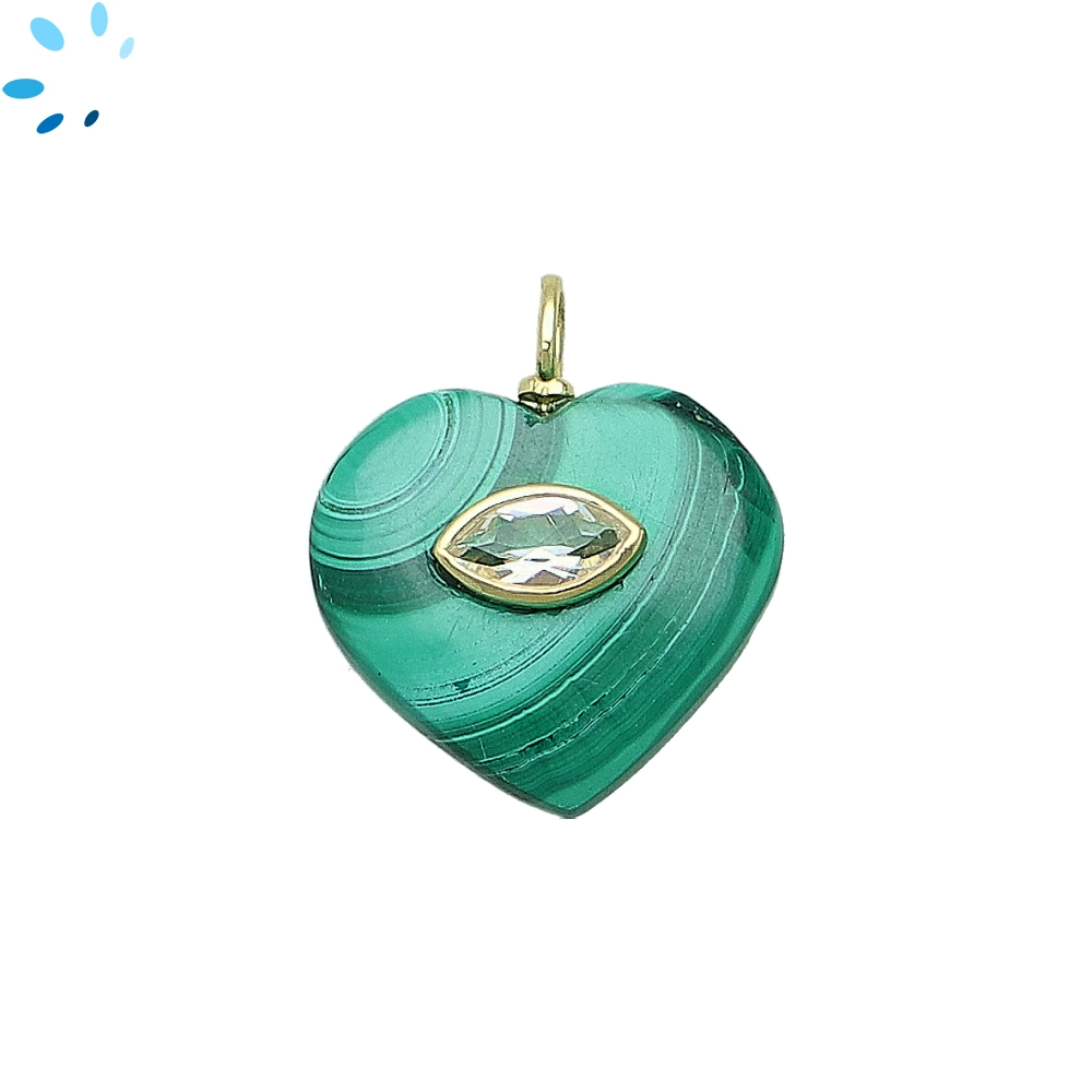 Malachite & White Topaz Heart Inlay Pendant Charm 19mm - 18k Gold Plated Sterling Silver