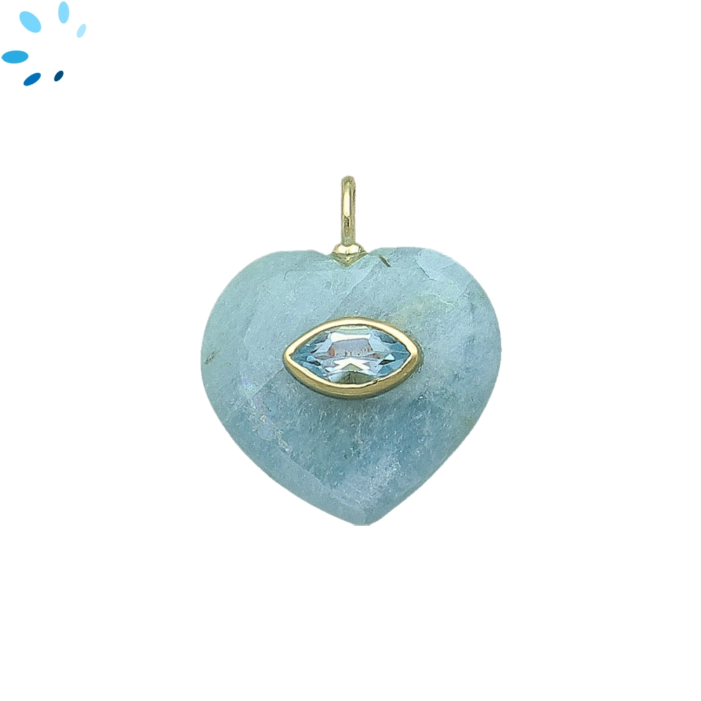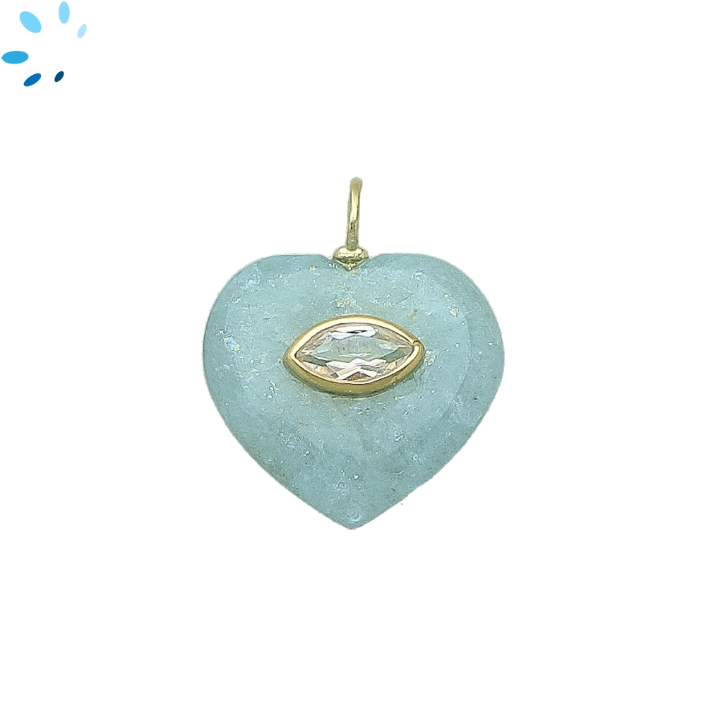 Aquamarine & White Topaz Heart Inlay Pendant Charm 19mm - 18k Gold Plated Sterling Silver