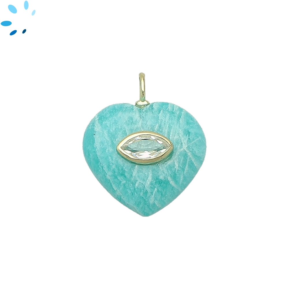 Amazonite & White Topaz Heart Inlay Pendant Charm 19mm - 18k Gold Plated Sterling Silver