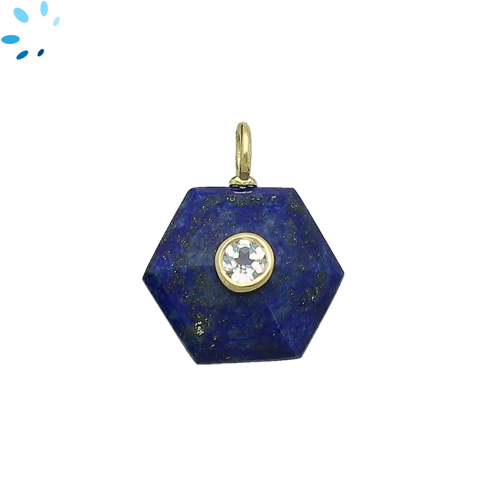 Lapis & White Topaz Hexagon Inlay Pendant Charm 16mm - 18k Gold Plated Sterling Silver