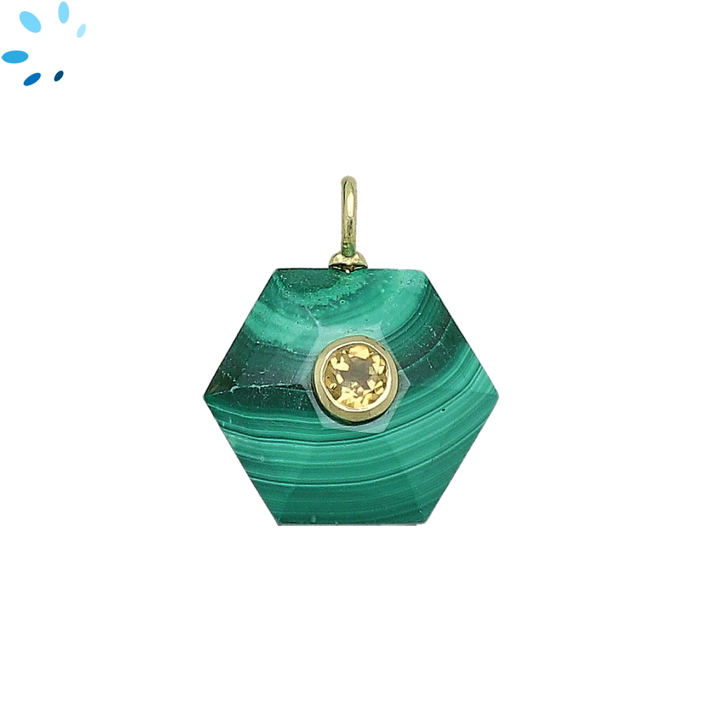 Malachite & Citrine Hexagon Inlay Charm Pendant 16mm - 18k Gold Plated Sterling Silver