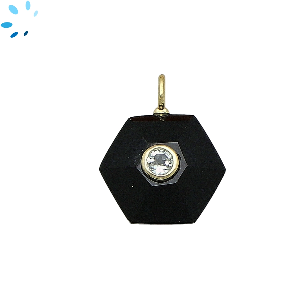 Black Onyx & White Topaz Hexagon Inlay Pendant Charm 16mm - 18k Gold Plated Sterling Silver