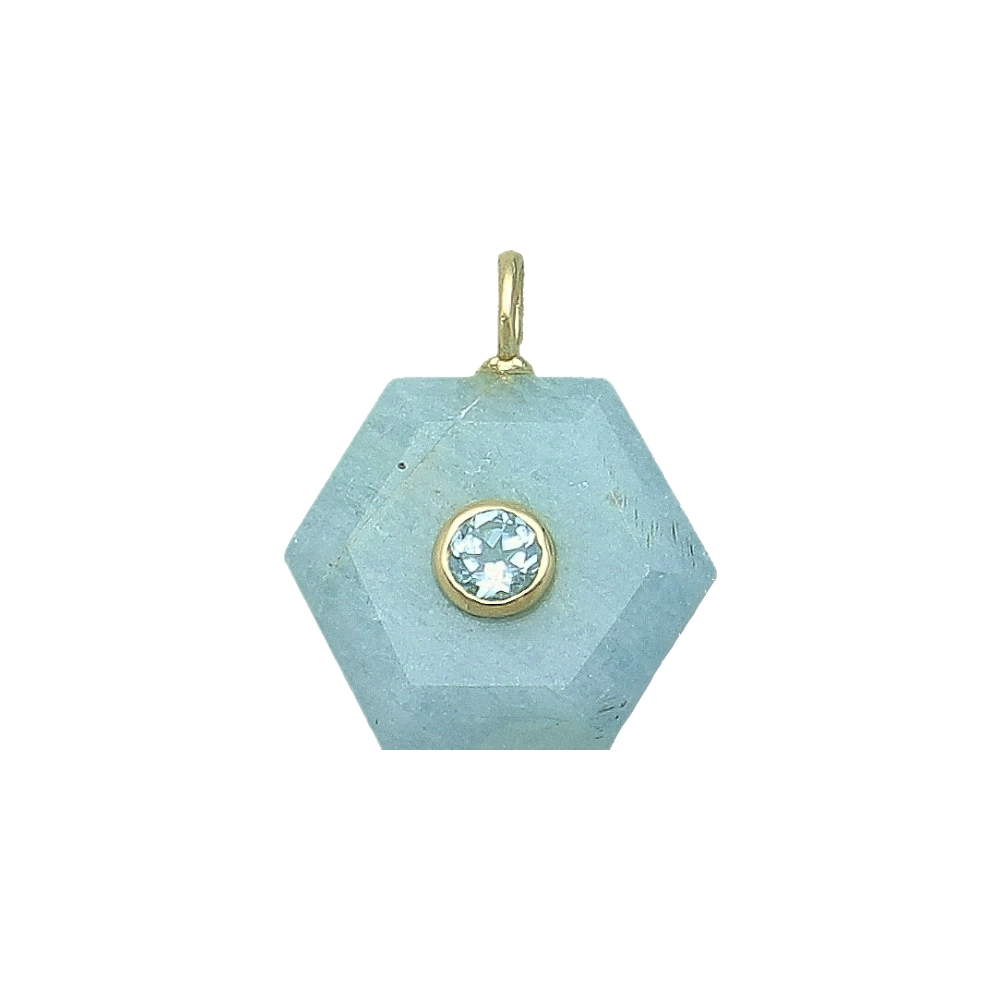 Aquamarine & White Topaz Hexagon Inlay Pendant Charm 16mm - 18k Gold Plated Sterling Silver
