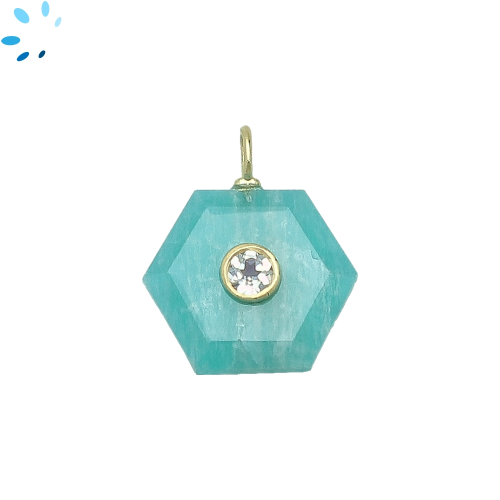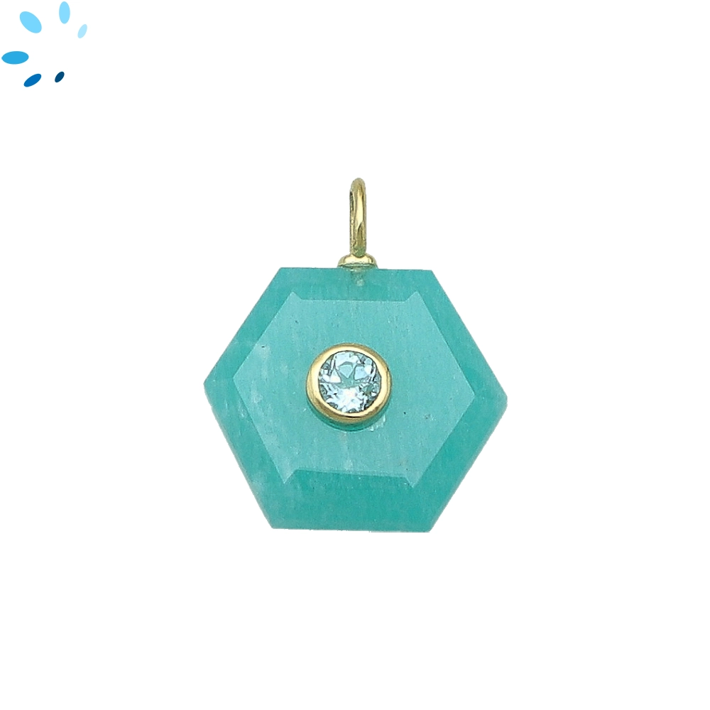 Amazonite & White Topaz Hexagon Inlay Pendant Charm 16mm - 18k Gold Plated Sterling Silver