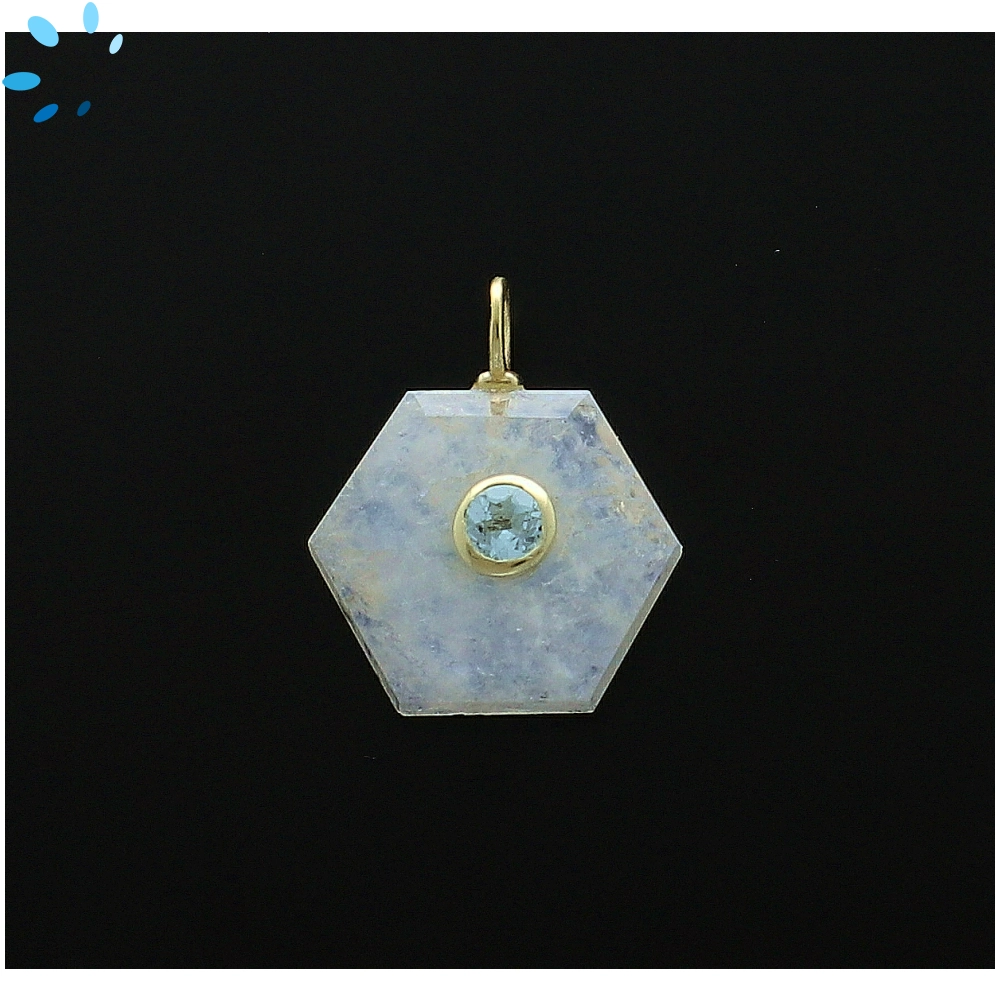Aquamarine & Blue Topaz Hexagon Inlay Charm Pendant 16mm - 18k Gold Plated Sterling Silver