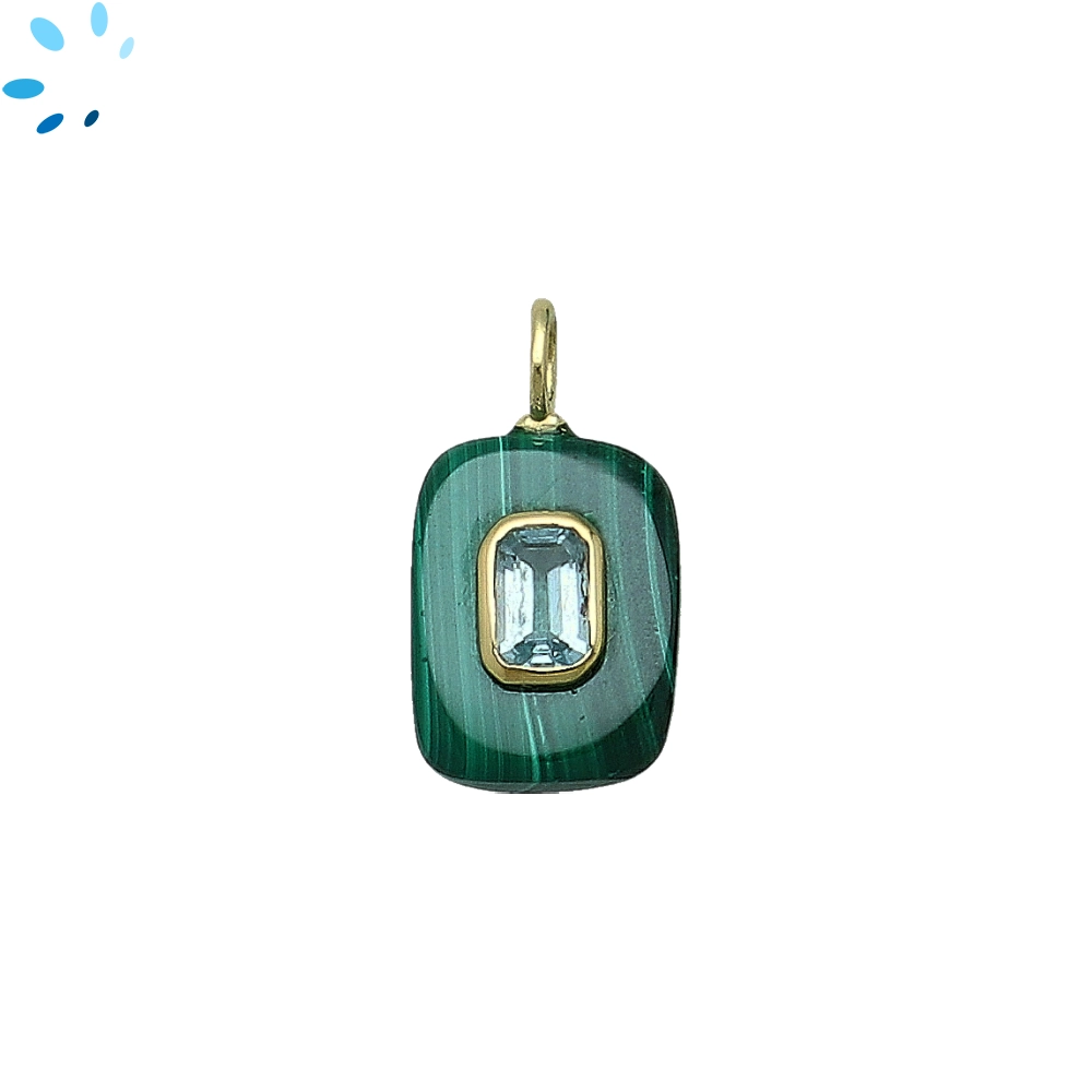 Malachite & Blue Topaz Rectangle Inlay Charm Pendant 15x11mm - 18k Gold Plated Sterling Silver