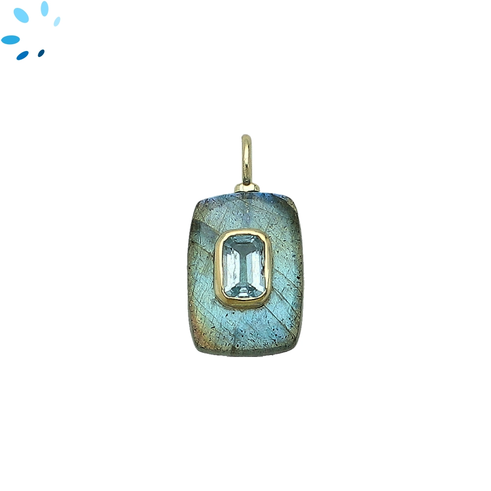 Labradorite & Blue Topaz Rectangle Inlay Charm Pendant 15x11mm - 18k Gold Plated Sterling Silver