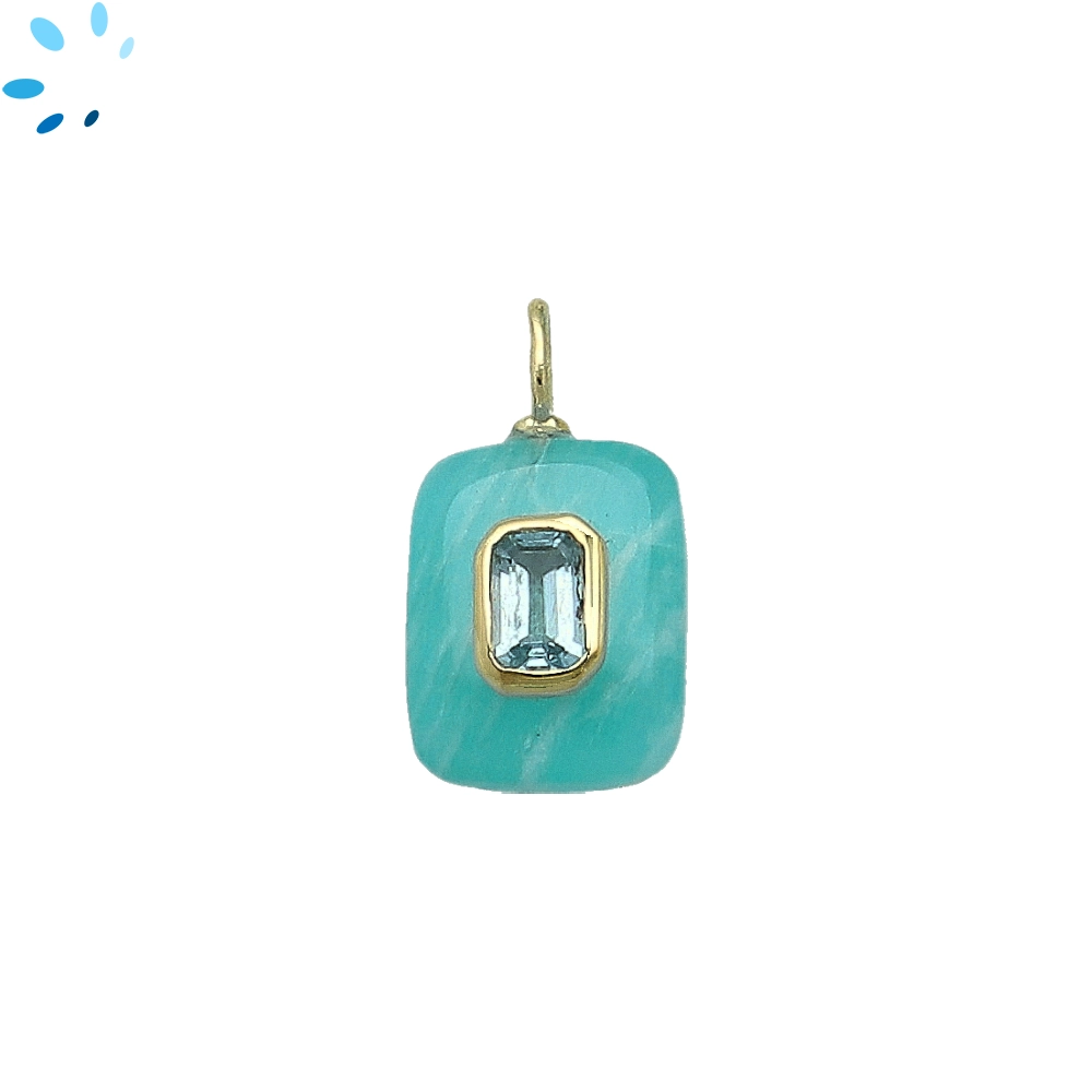 Amazonite & Blue Topaz Rectangle Inlay Pendant Charm 15x11mm - 18k Gold Plated Sterling Silver