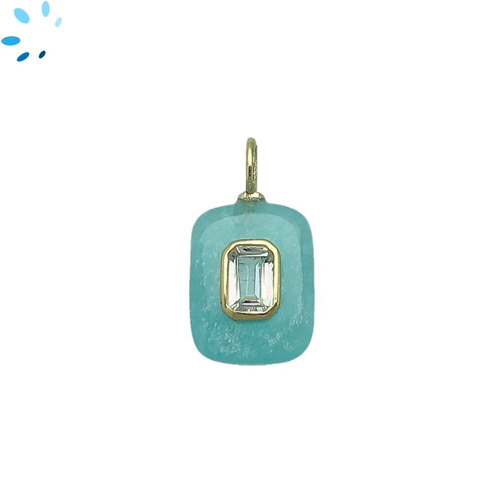 Amazonite & White Topaz Rectangle Inlay Charm Pendant 15x11mm - 18k Gold Plated Sterling Silver