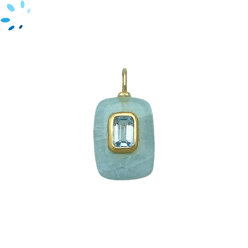 Aquamarine & Blue Topaz Rectangle Inlay Pendant Charm 15x11mm - 18k Gold Plated Sterling Silver