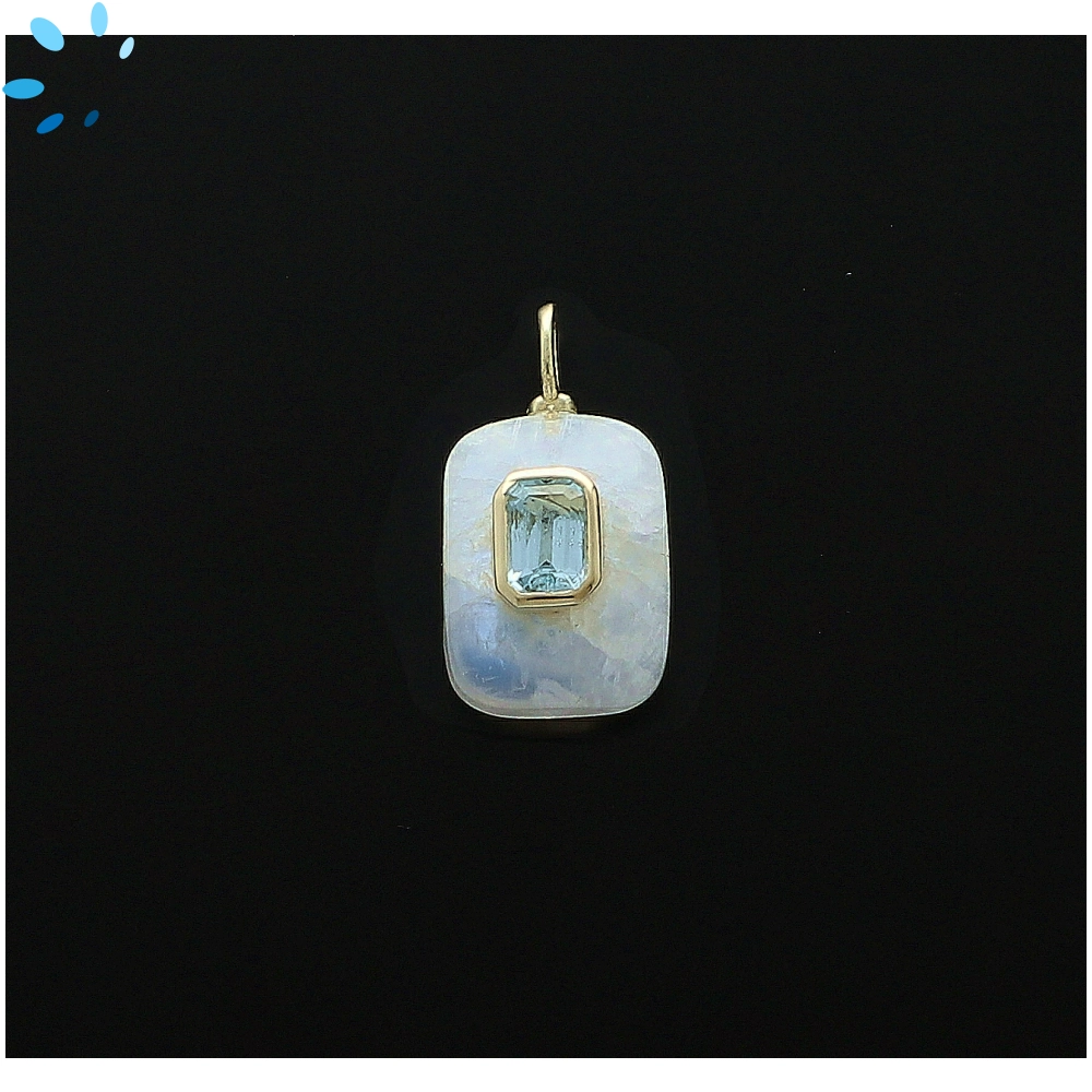 Rainbow Moonstone & Blue Topaz Rectangle Inlay Pendant Charm 15x11mm - 18k Gold Plated Sterling Silver