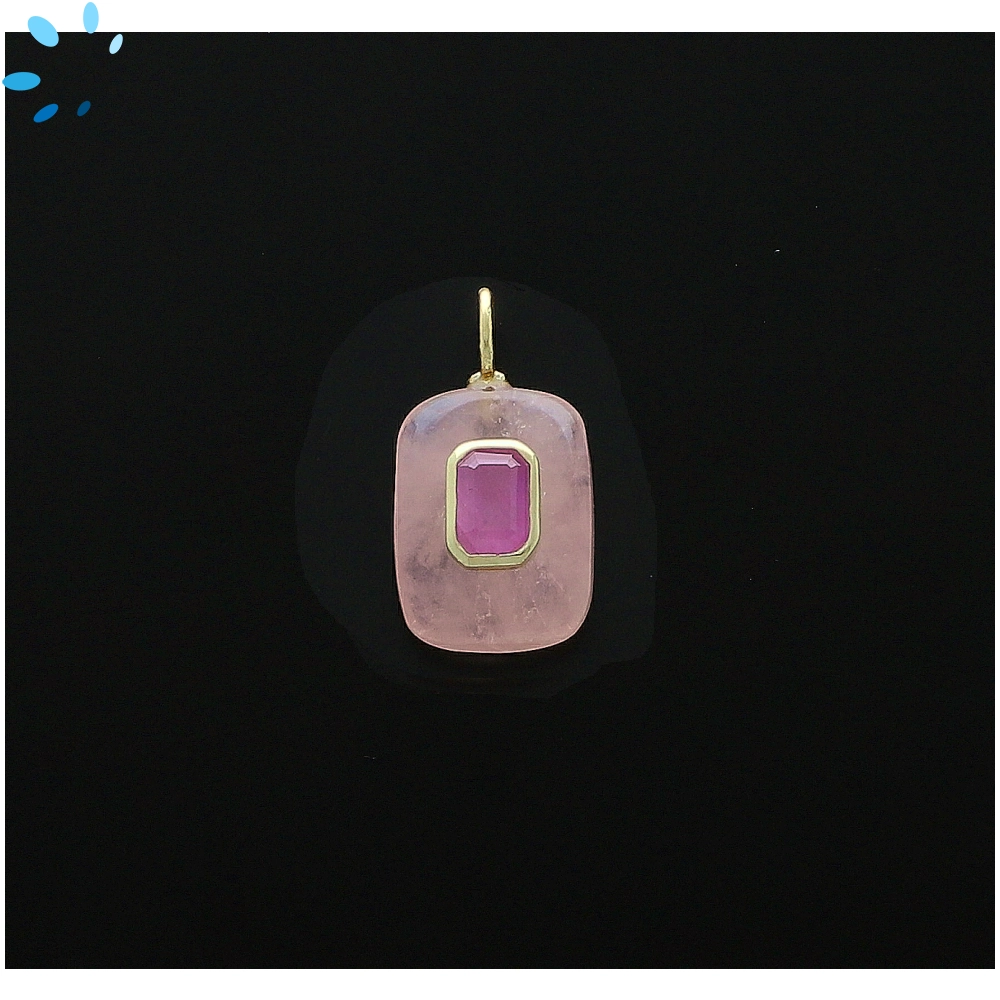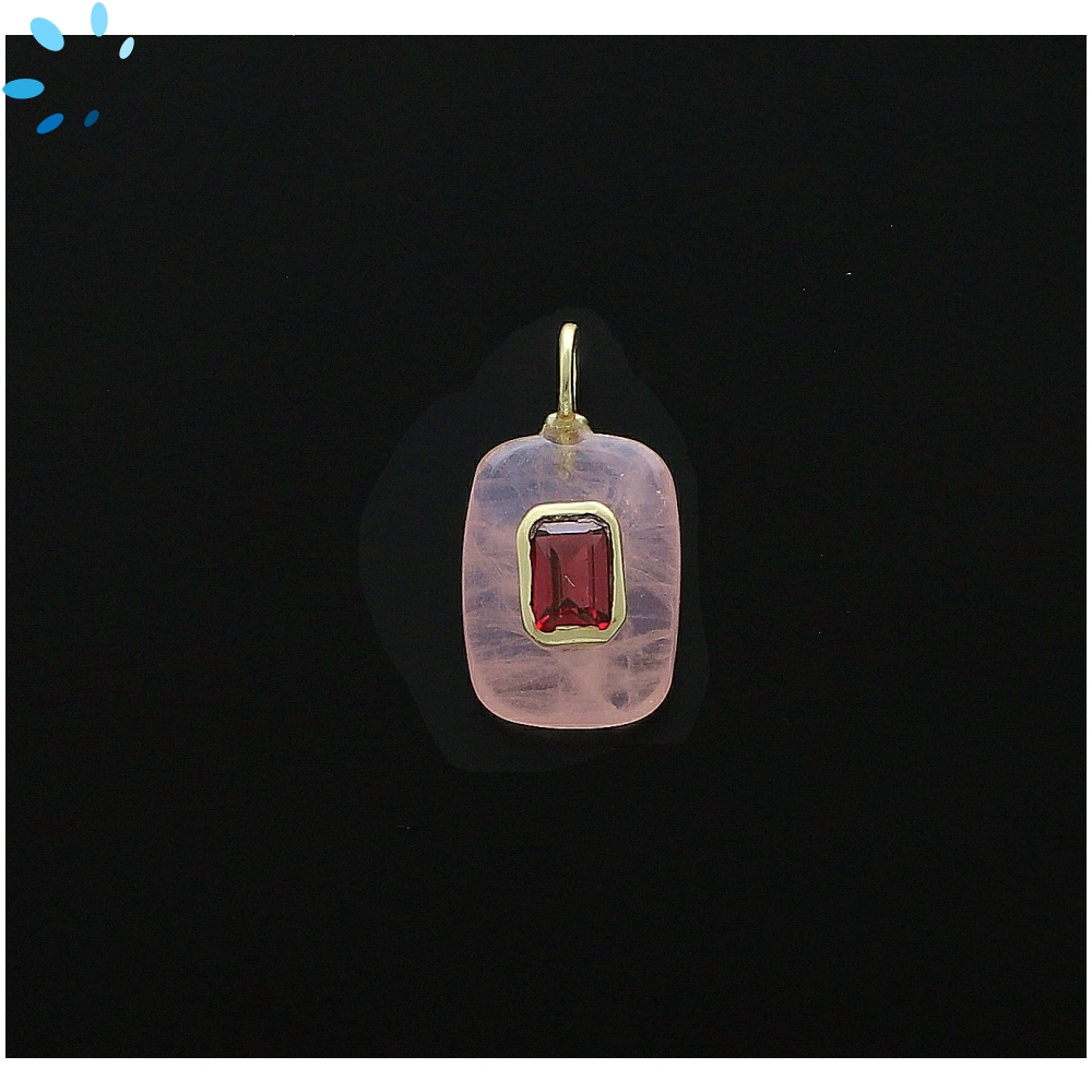 Rose Quartz & Garnet Rectangle Inlay Pendant Charm 15x11mm - 18k Gold Plated Sterling Silver