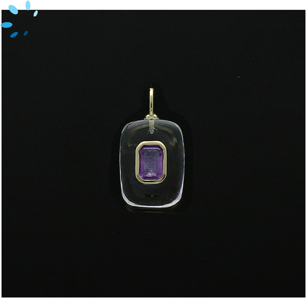 Crystal Quartz & Amethyst Rectangle Inlay Charm Pendant 15x11mm - 18k Gold Plated Sterling Silver