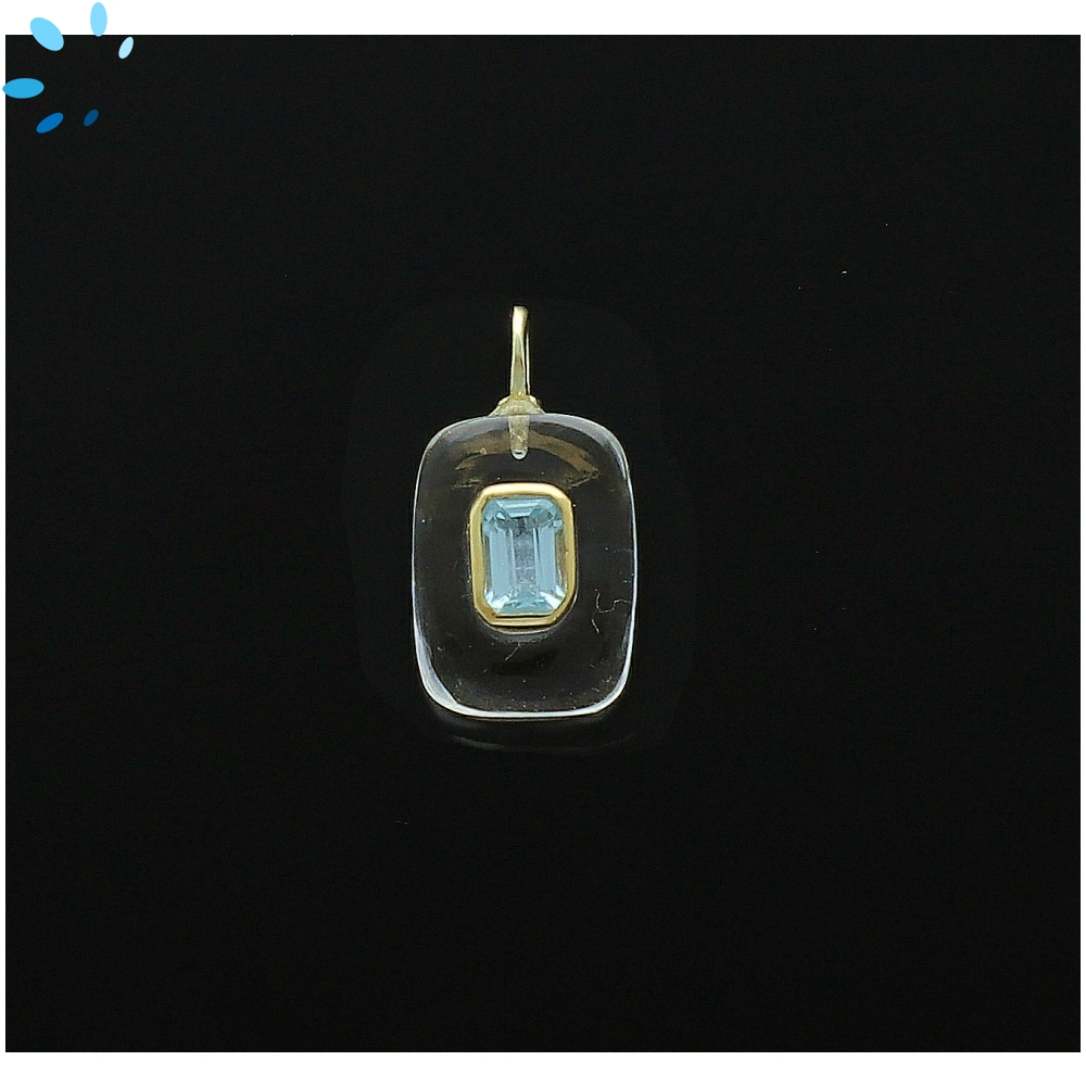 Crystal Quartz & Blue Topaz Rectangle Inlay Pendant Charm 15x11mm - 18k Gold Plated Sterling Silver