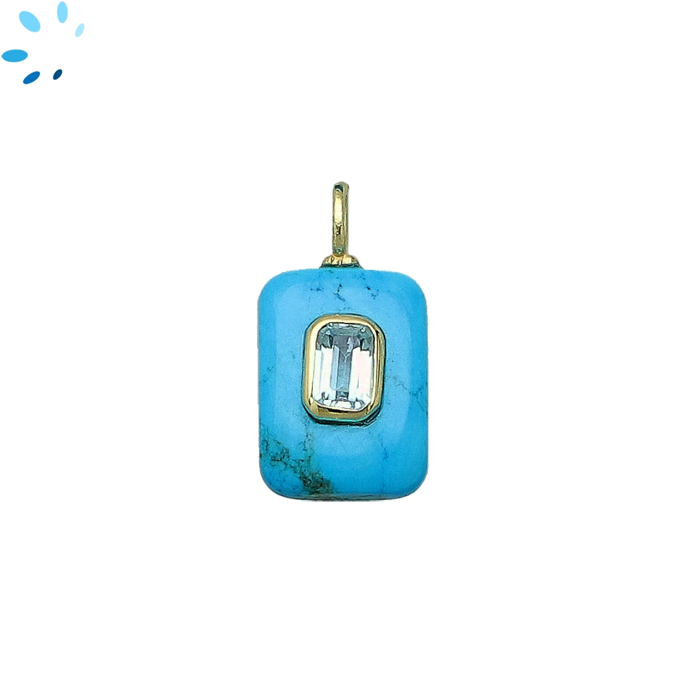 Turquoise Color Howlite & White Topaz Rectangle Inlay Pendant Charm 15x11mm - 18k Gold Plated Sterling Silver