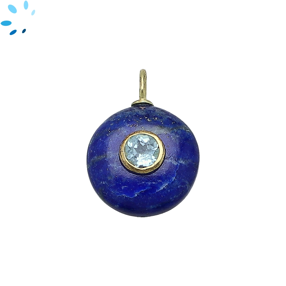 Lapis & Blue Topaz Round Inlay Charm Pendant 16mm - 18k Gold Plated Sterling Silver