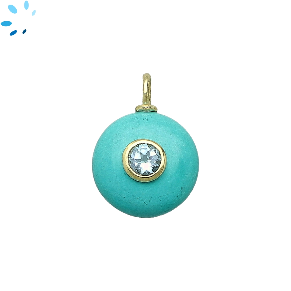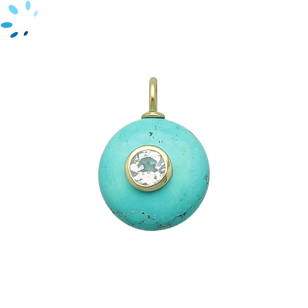 Turquoise & White Topaz Round Inlay Pendant Charm 16mm - 18k Gold Plated Sterling Silver