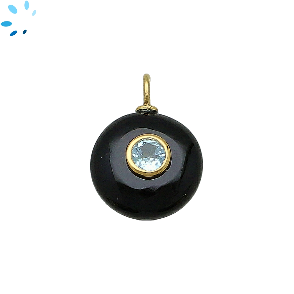 Black Onyx & Blue Topaz Round Inlay Pendant Charm 16mm - 18k Gold Plated Sterling Silver