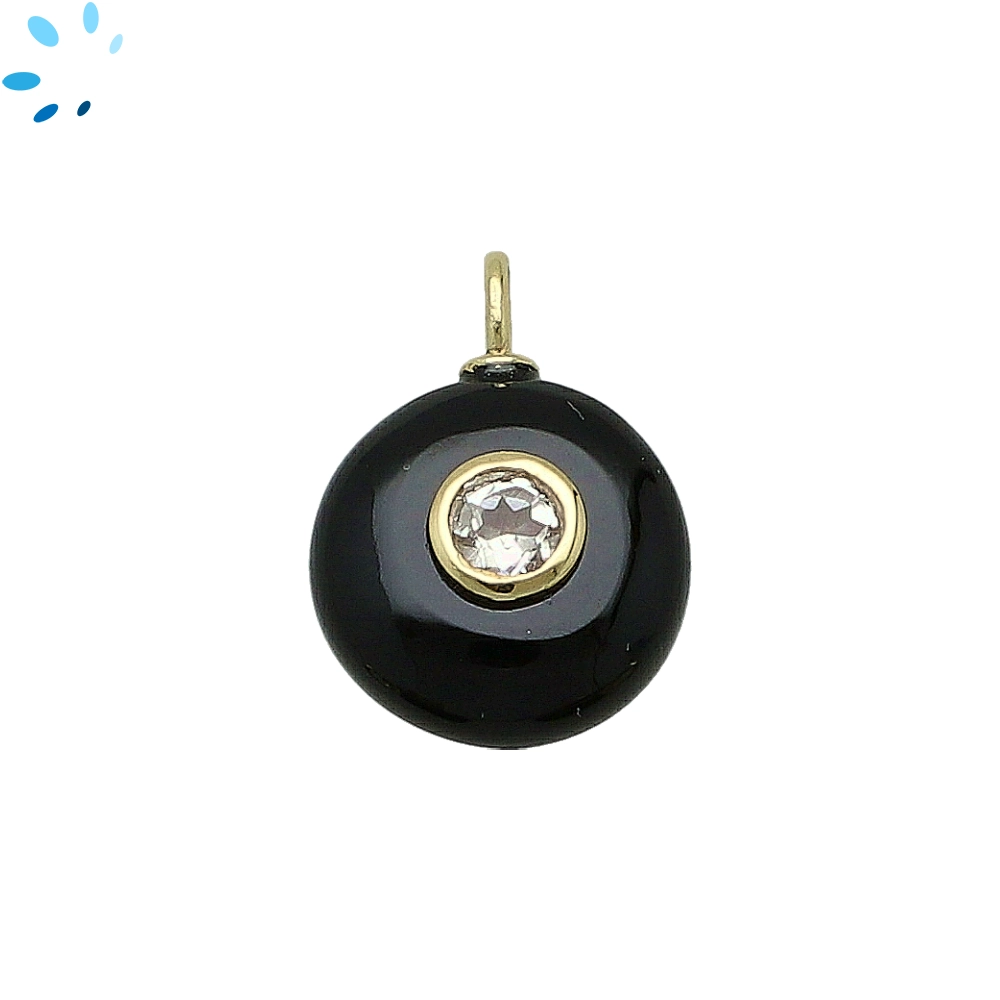 Black Onyx & White Topaz Round Inlay Charm Pendant 16mm - 18k Gold Plated Sterling Silver