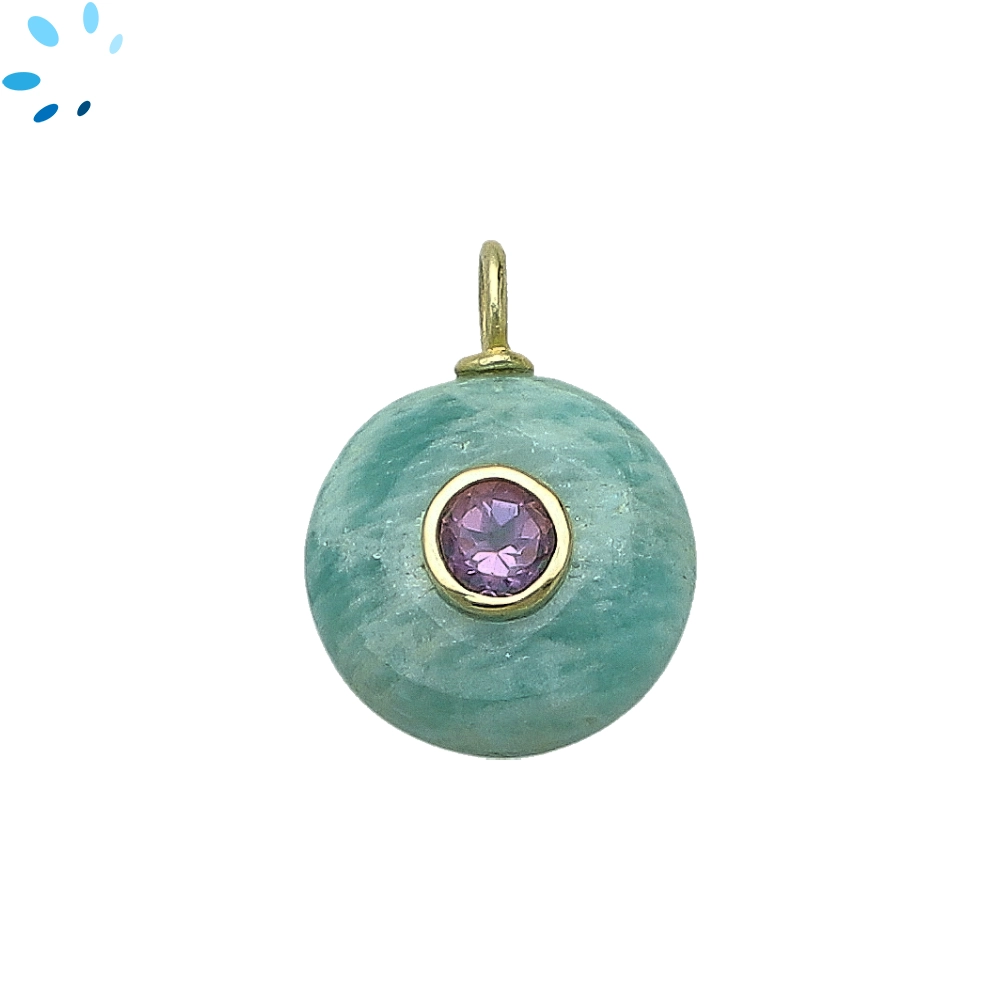 Amazonite & Amethyst Round Inlay Pendant Charm 16mm - 18k Gold Plated Sterling Silver