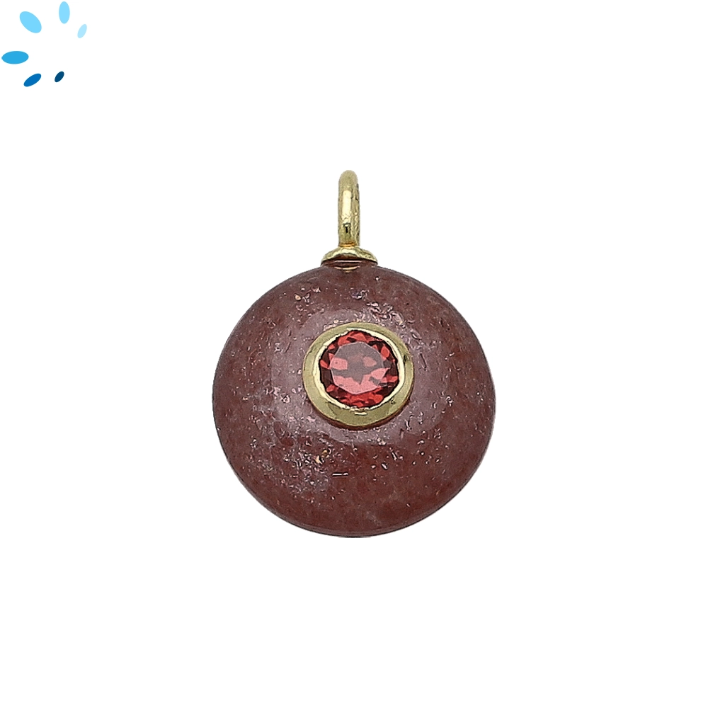 Strawberry Quartz & Garnet Round Inlay Charm Pendant 16mm - 18k Gold Plated Sterling Silver