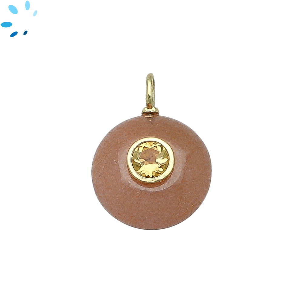 Peach Moonstone & Citrine Round Inlay Pendant Charm 16mm - 18k Gold Plated Sterling Silver