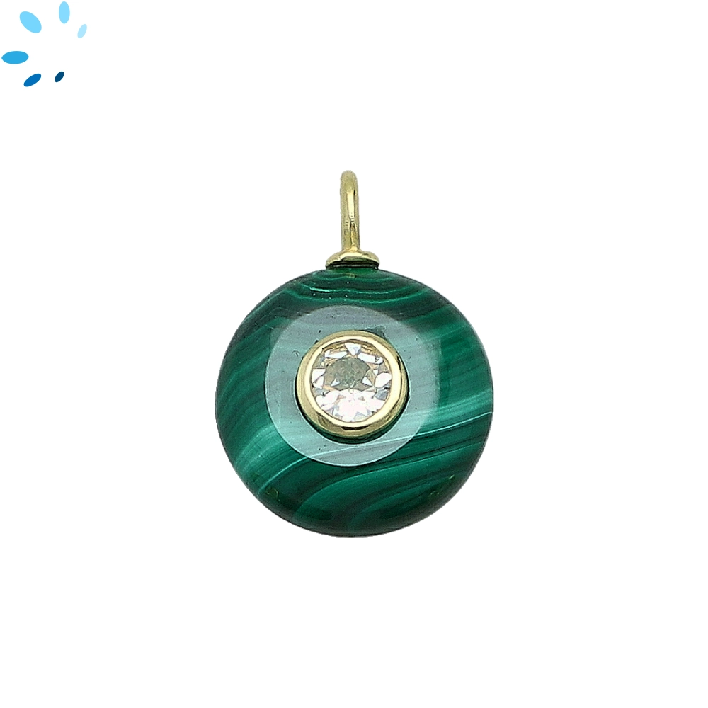 Malachite & White Topaz Round Inlay Pendant Charm 16mm - 18k Gold Plated Sterling Silver