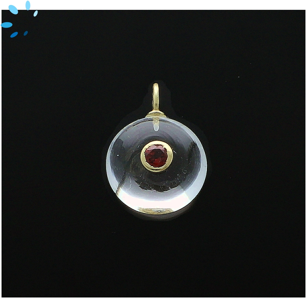 Crystal Quartz & Garnet Round Inlay Charm Pendant 16mm - 18k Gold Plated Sterling Silver