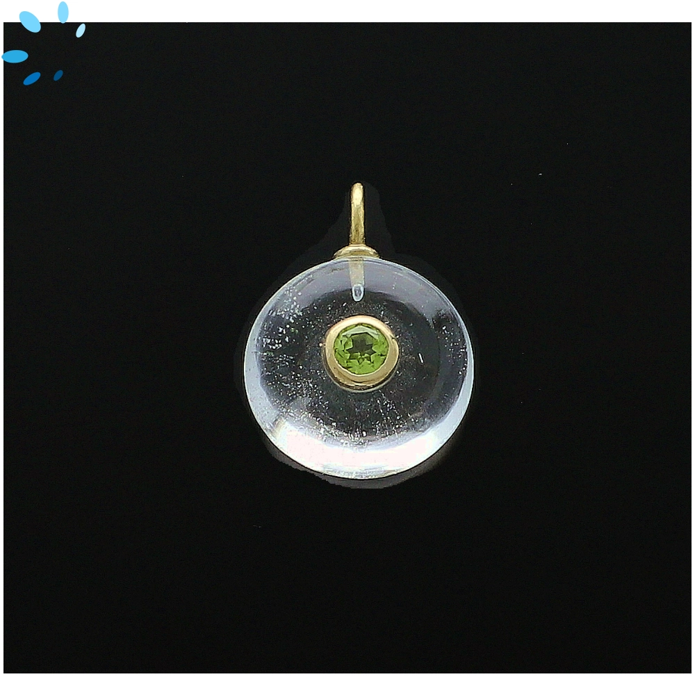 Crystal Quartz & Peridot Round Inlay Pendant Charm 16mm - 18k Gold Plated Sterling Silver