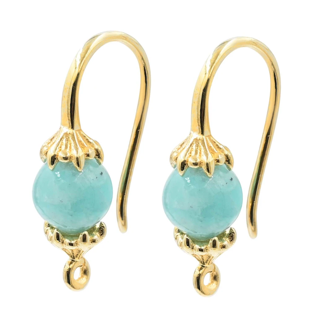 Sterling Silver 18K Gold Plated Amazonite Round Bead French Hook Ear Wire with Charm Loop