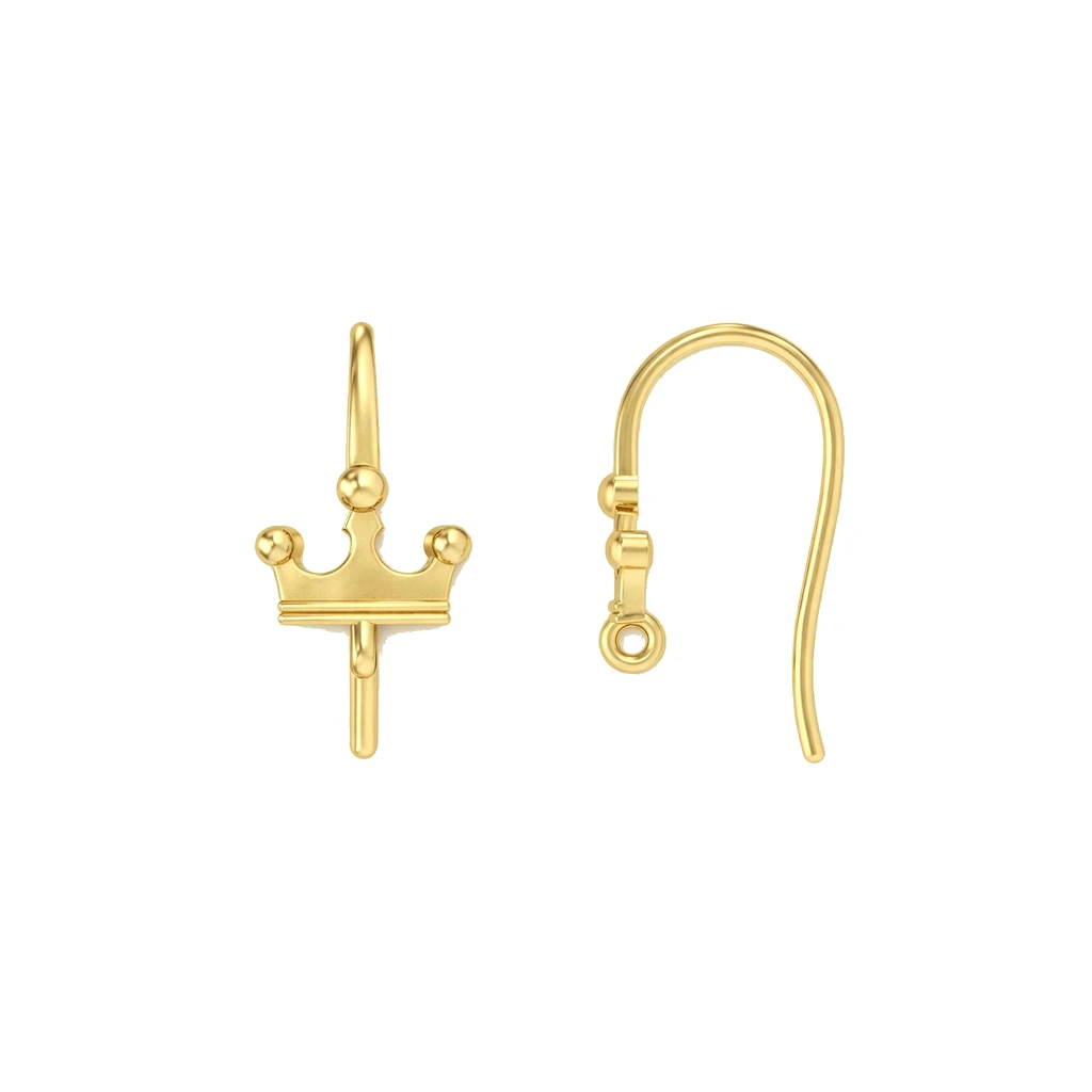 Sterling Silver 18K Gold Plated Crown French Hook Ear Wire Findings with Charm Loop