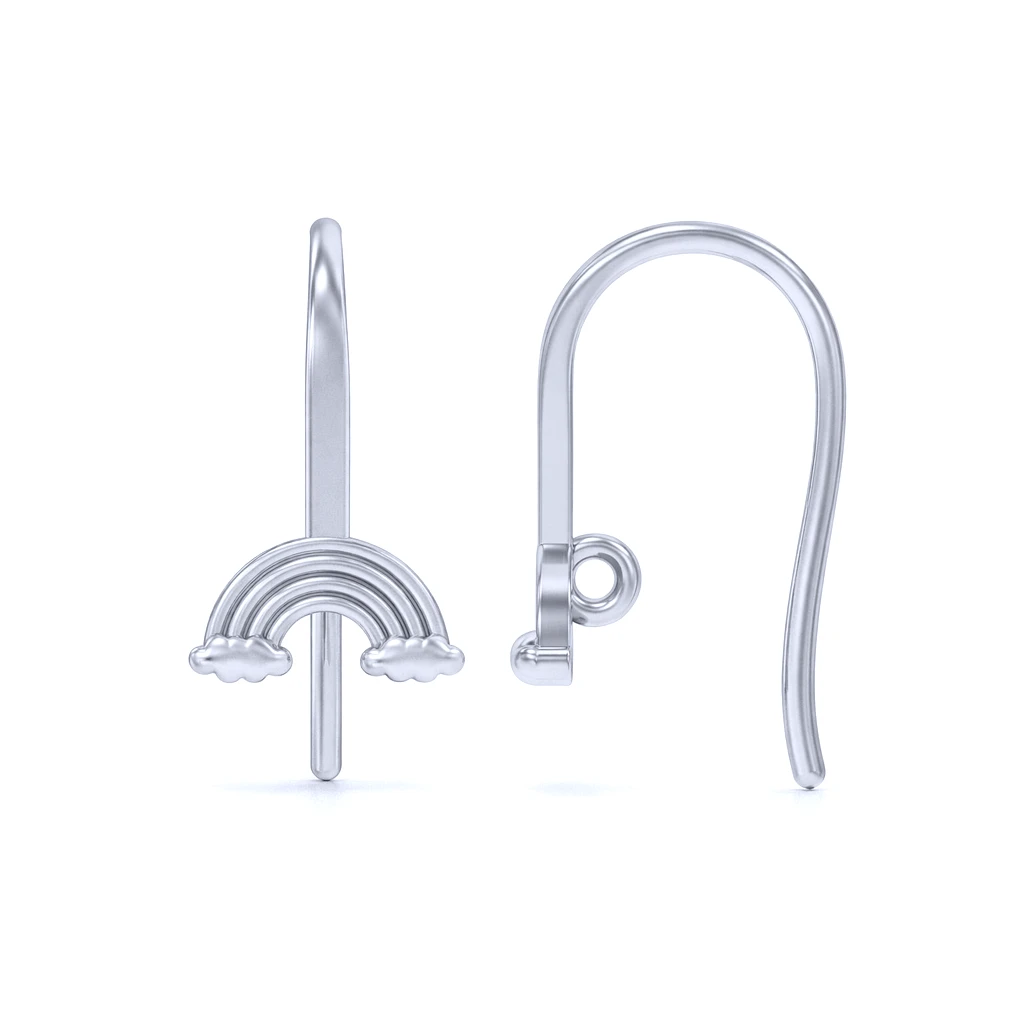 Sterling Silver Platinium Plated Rainbow Cloud French Hook Ear Wire Findings with Charm Loop