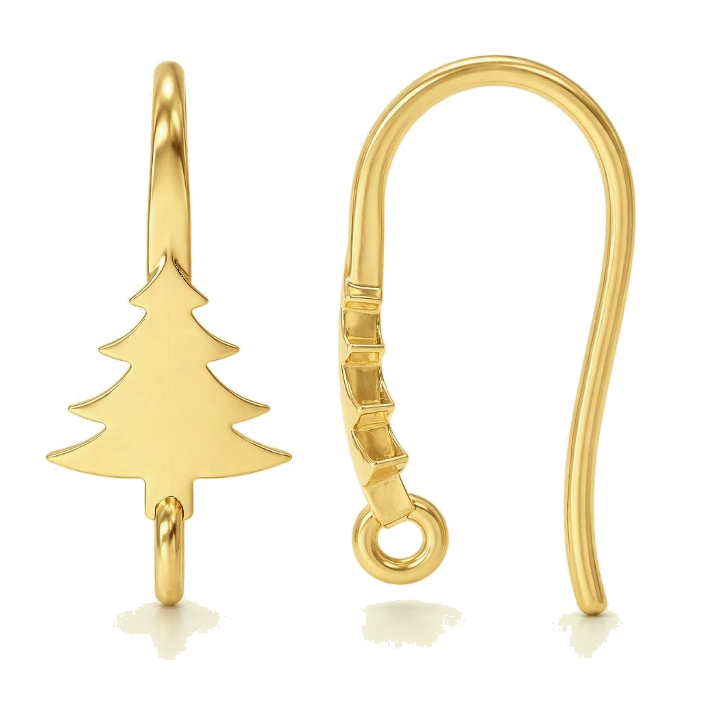 Sterling Silver 18K Gold Plated Christmas Tree French Hook Ear Wire Findings with Charm Loop