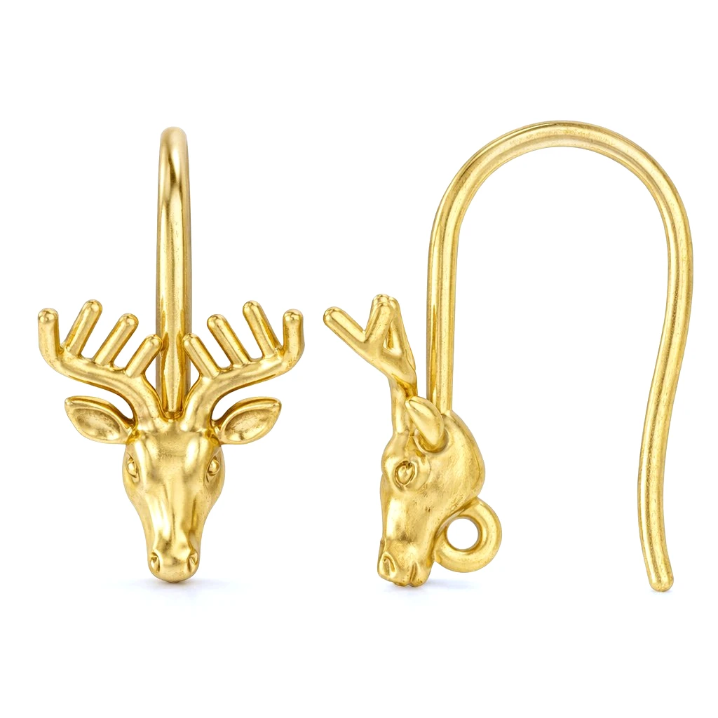 Sterling Silver 18K Gold Plated Deer Stag Head French Hook Ear Wire with Charm Loop