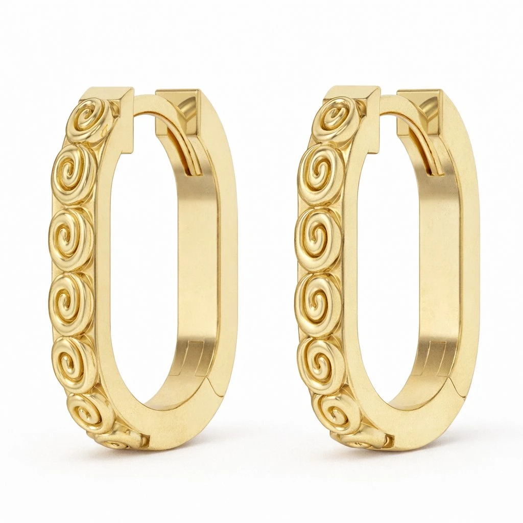 Sterling Silver 18K Gold Plated Spiral Swirl Rectangular Huggie Hoop Earrings