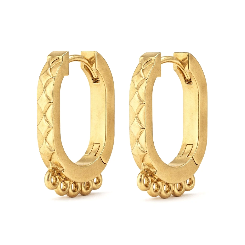 Sterling Silver 18K Gold Plated Wave Engraved Round Huggie Hoop Earrings with 5 Charm Loops