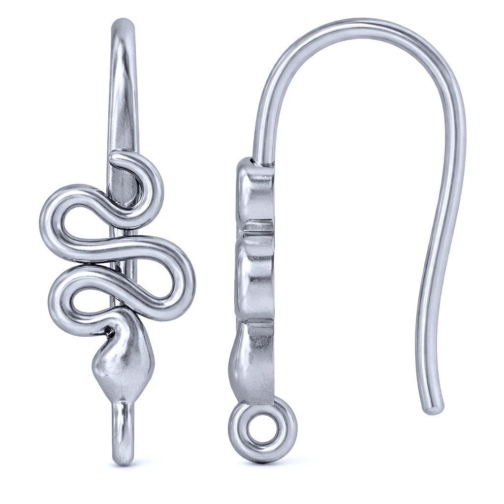 Sterling Silver Platinium Plated Serpent Coil French Hook Ear Wire with Charm Loop