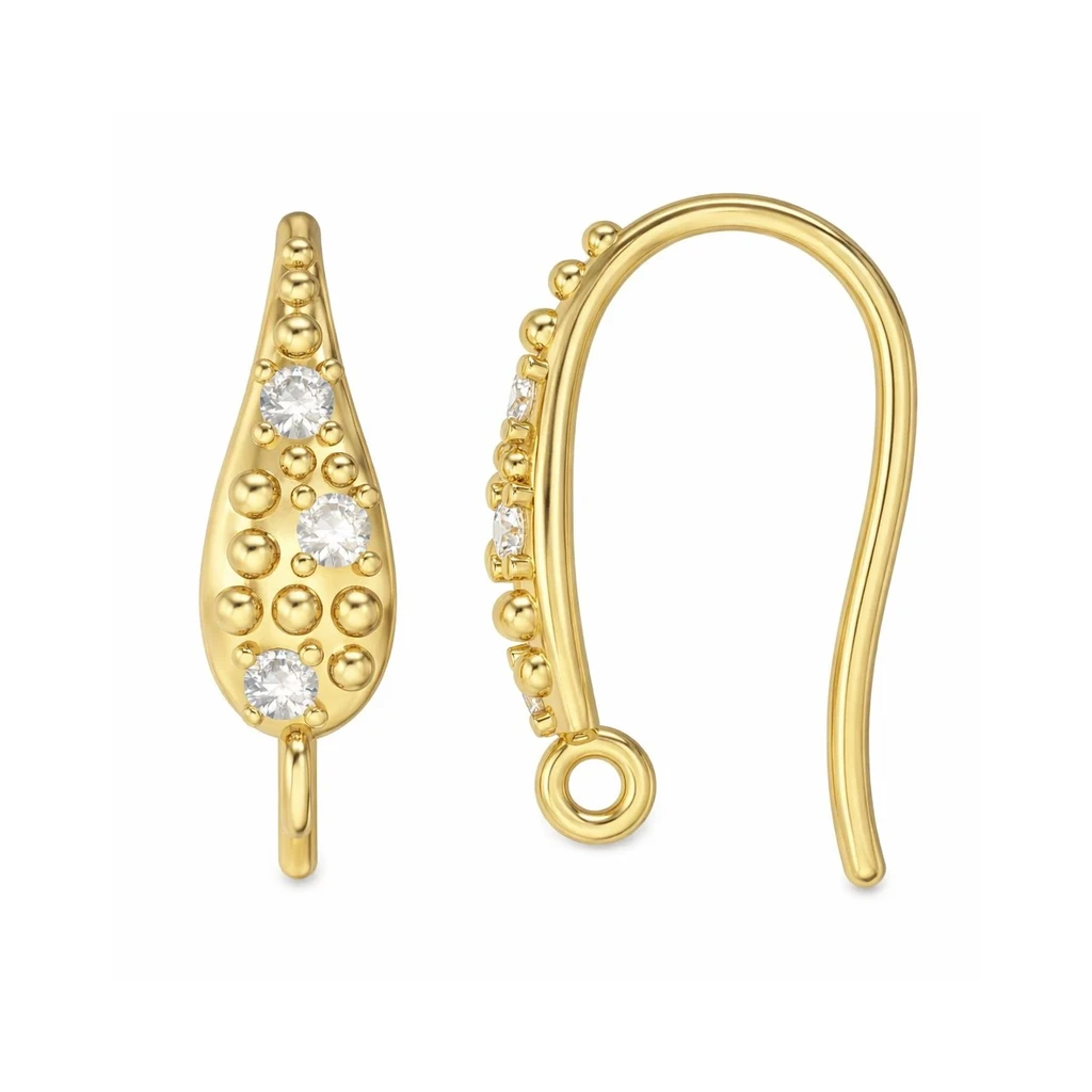 Sterling Silver 18K Gold Plated Natural Zircon Teardrop French Hook Earring Findings with Loop