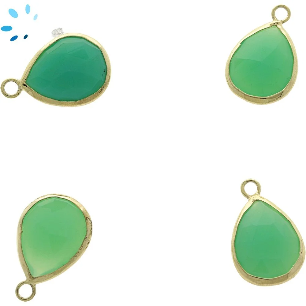 Chrysoprase Chalcedony Pear Bezel Charm Pendant 9x7mm - 18k Gold Plated Sterling Silver - Set of 4