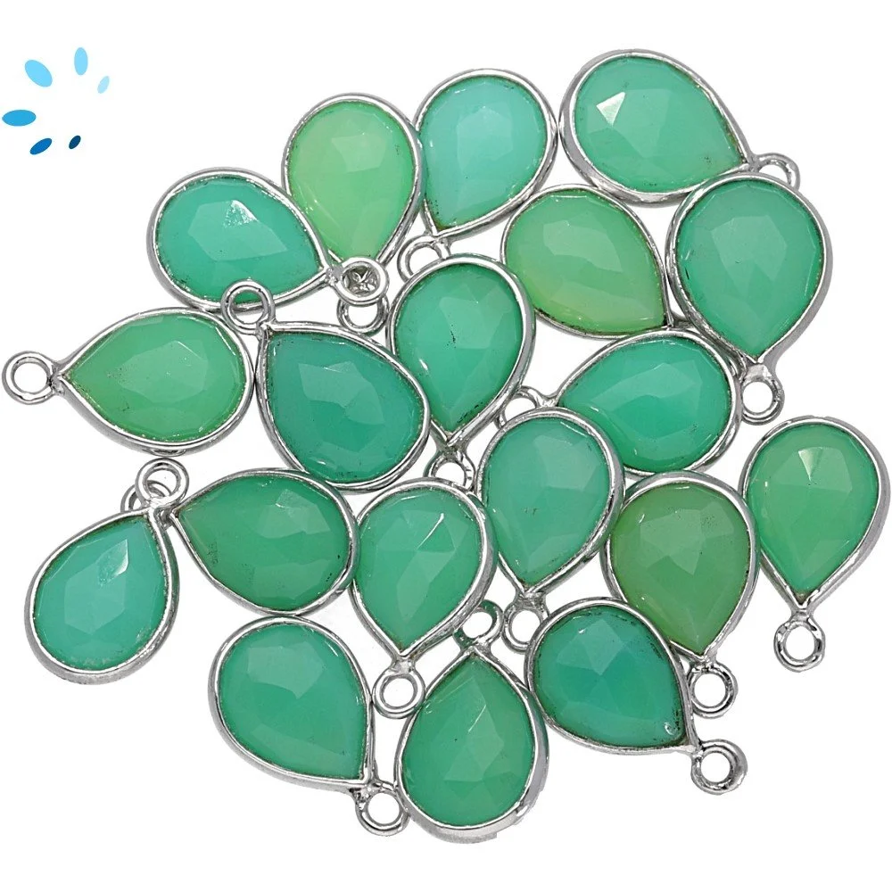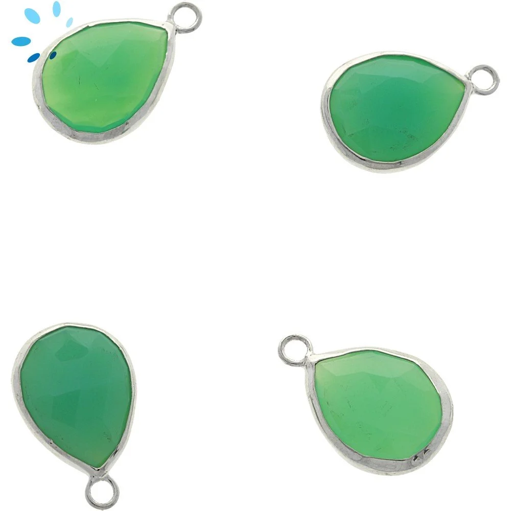 Chrysoprase Chalcedony Pear Bezel Charm Pendant 15x12mm - Platinum Plated Sterling Silver - Set of 4