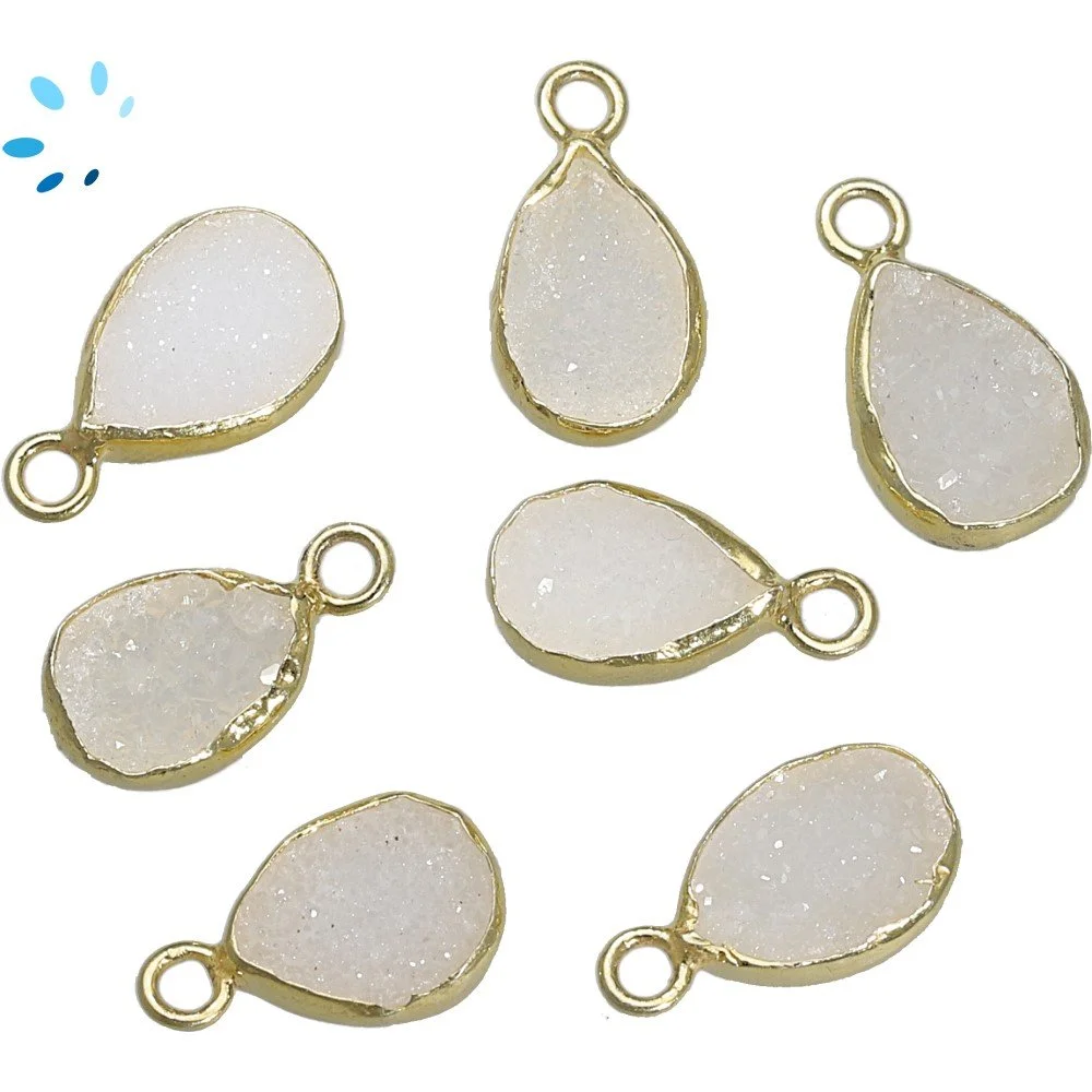 White Druzy Pear Bezel Pendant Charm 10x7 - 12x8mm - 18k Gold Plated Sterling Silver - Set of 4