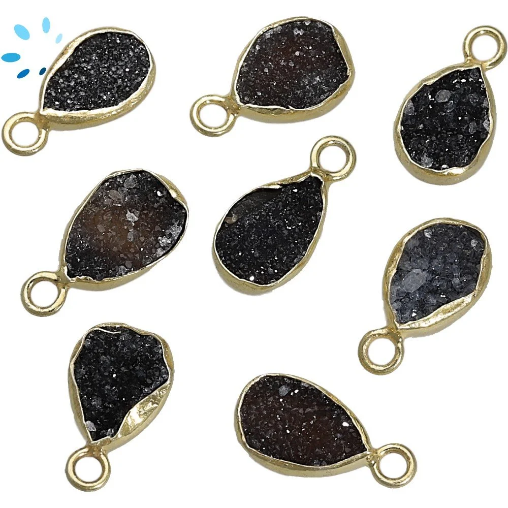 Black Druzy Pear Bezel Charm Pendant 10x7 - 12x8mm - 18k Gold Plated Sterling Silver - Set of 4