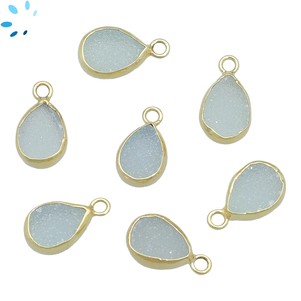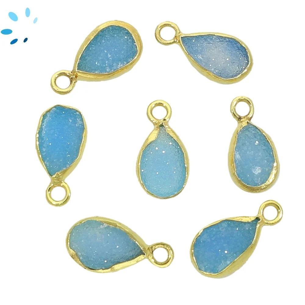 Aqua Druzy Pear Bezel Pendant Charm 10x7 - 12x8mm - 18k Gold Plated Sterling Silver - Set of 4