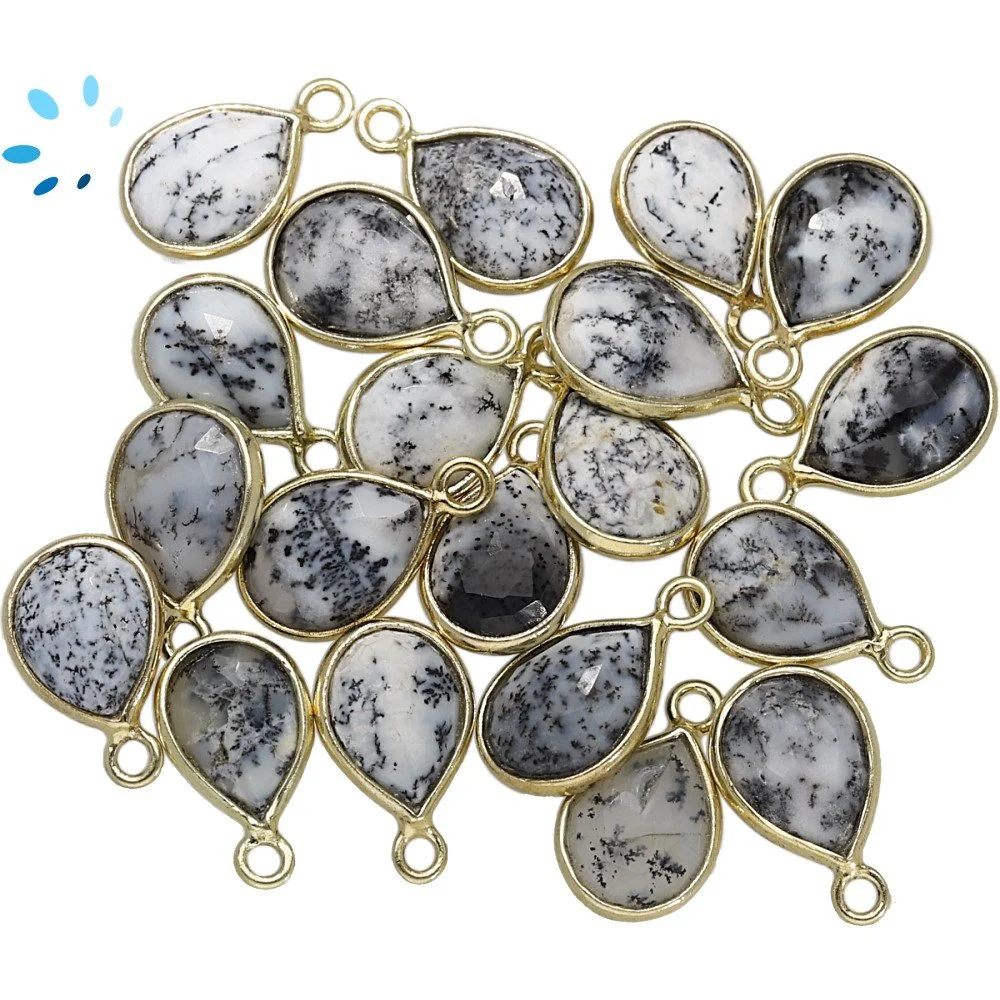 Dendrite Opal Pear Bezel Charm Pendant 9x7mm - 18k Gold Plated Sterling Silver - Set of 4