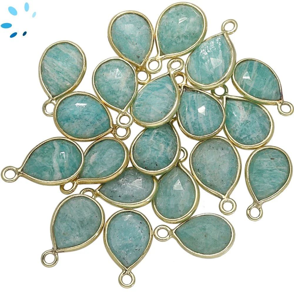 Amazonite Pear Bezel Charm Pendant 9x7mm - 18k Gold Plated Sterling Silver - Set of 4