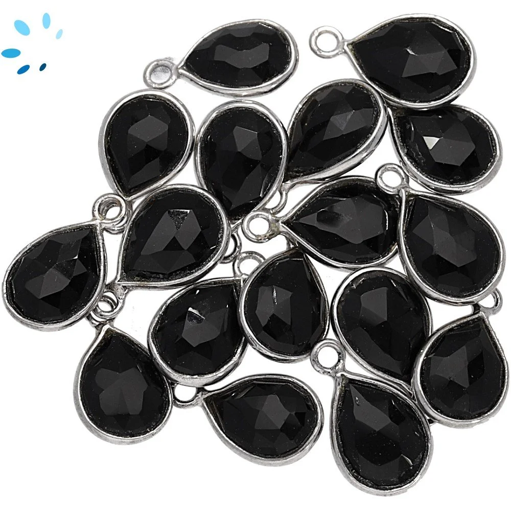 Black Onyx Pear Bezel Charm Pendant 9x7mm - Platinum Plated Sterling Silver - Set of 4