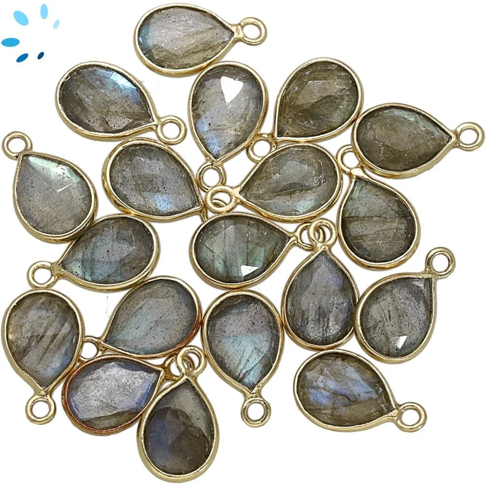 Labradorite Pear Bezel Pendant Charm 9x7mm - 18k Gold Plated Sterling Silver - Set of 4