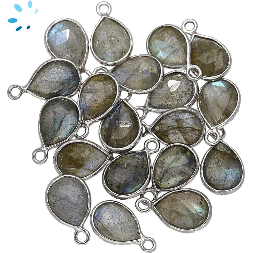 Labradorite Pear Bezel Charm Pendant 9x7mm - Platinum Plated Sterling Silver - Set of 4