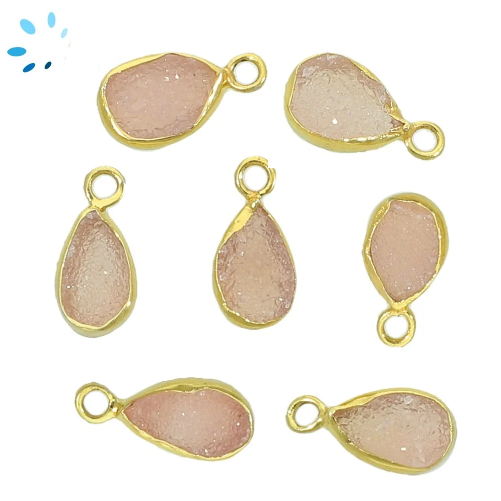 Pink Druzy Pear Bezel Pendant Charm 10x7 - 12x8mm - 18k Gold Plated Sterling Silver - Set of 4