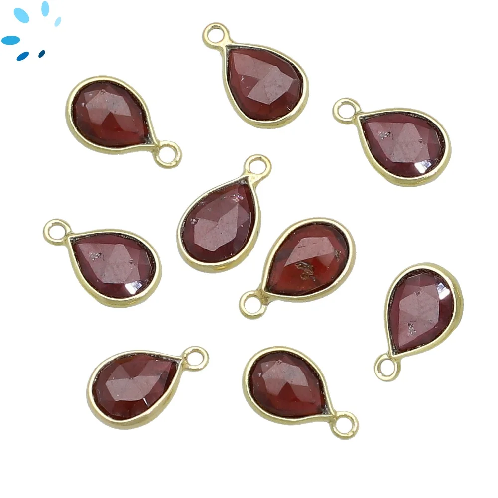 Garnet Pear Bezel Charm Pendant 10x8mm - 18k Gold Plated Sterling Silver - Set of 4